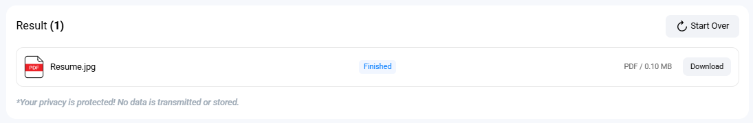 If someone has their resume in an image format or is trying to take a screenshot of a resume created using a paid template. Then, they can use tools like the Image to PDF Converter. This will allow them to convert their document into PDF format easily and without any issues.