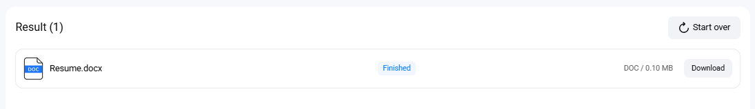 Just like that, you have made a .DOCX file of your resume, ready to share the document with recruiters or hiring teams with the required edits (if needed).